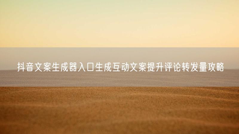 在短视频风靡的当下,抖音作为其中的佼佼者,吸引了无数创作者投身其中。然而,想要在抖音上脱颖而出,不仅需要优质的内容,更需要吸引人的文案来引导用户互动。这时,抖音文案生成器便成为了创作者的得力助手。本文将为你详细介绍抖音文案生成器的入口及使用攻略,助你轻松生成高互动文案,提升评论转发量。